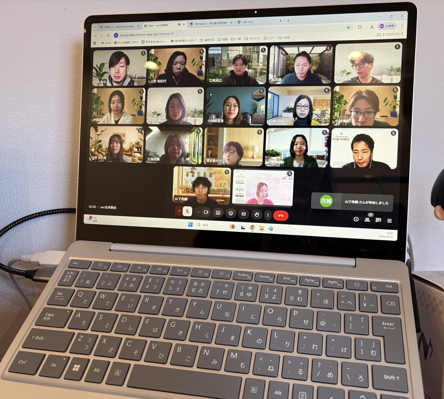 リモートワークの会社なので、よく社員同士のコミュニケーションってどうしているの?と聞かれることがありますが、社員全員参加のこの「朝会」がそのコミュニケーション方法の1つになります!