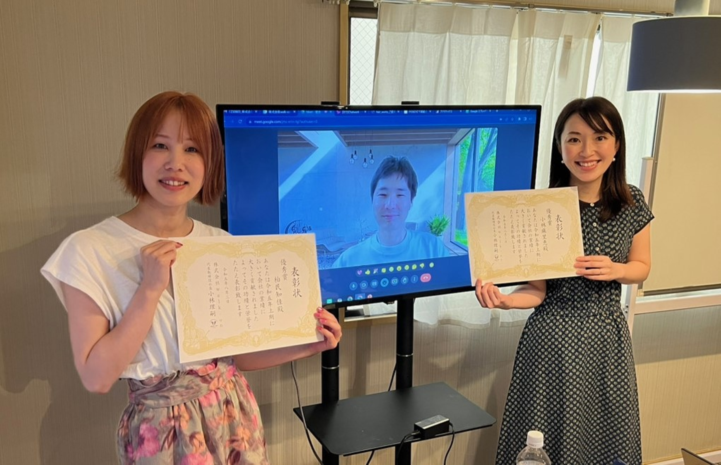 ▲上期表彰式の様子。前回前田さんは事情がありリモートで参加でしたが1位表彰でした!