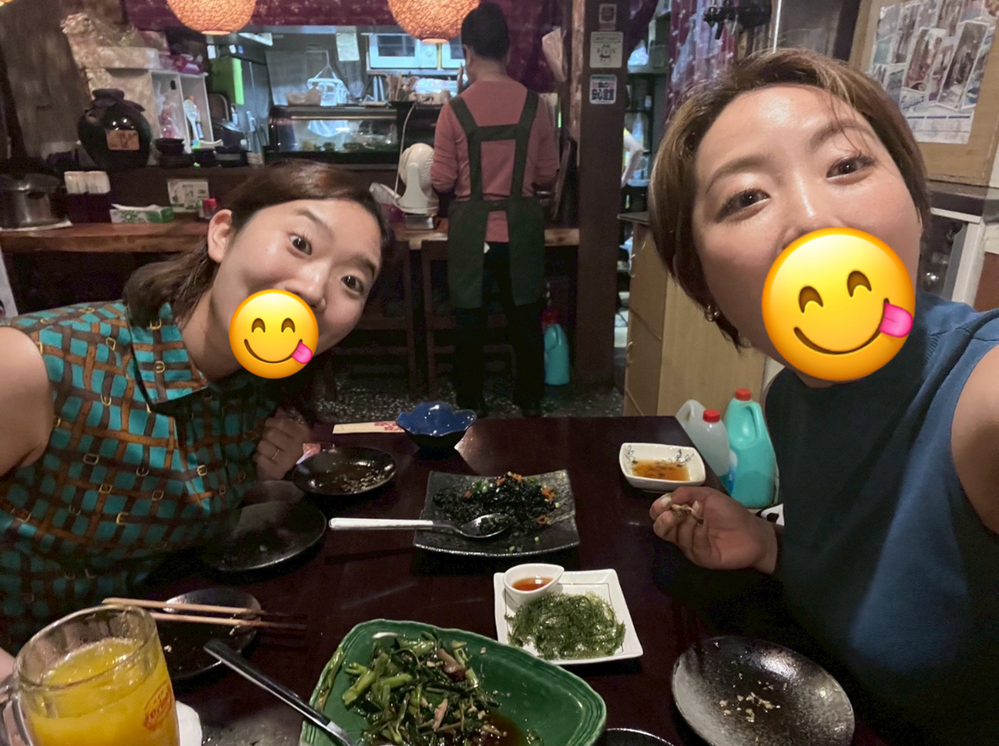 ▲同期中野さんと沖縄で再会!(イカ墨飯で口元が黒いので隠しています笑)