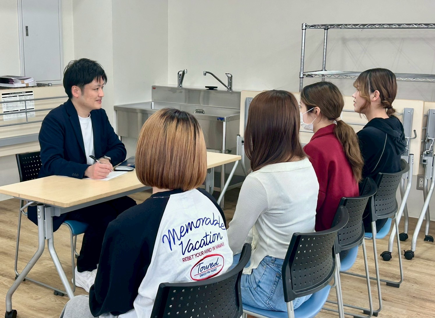 △立崎さんがサロンの面接官役。グループ面接なので一人ずつお話を聞いています。