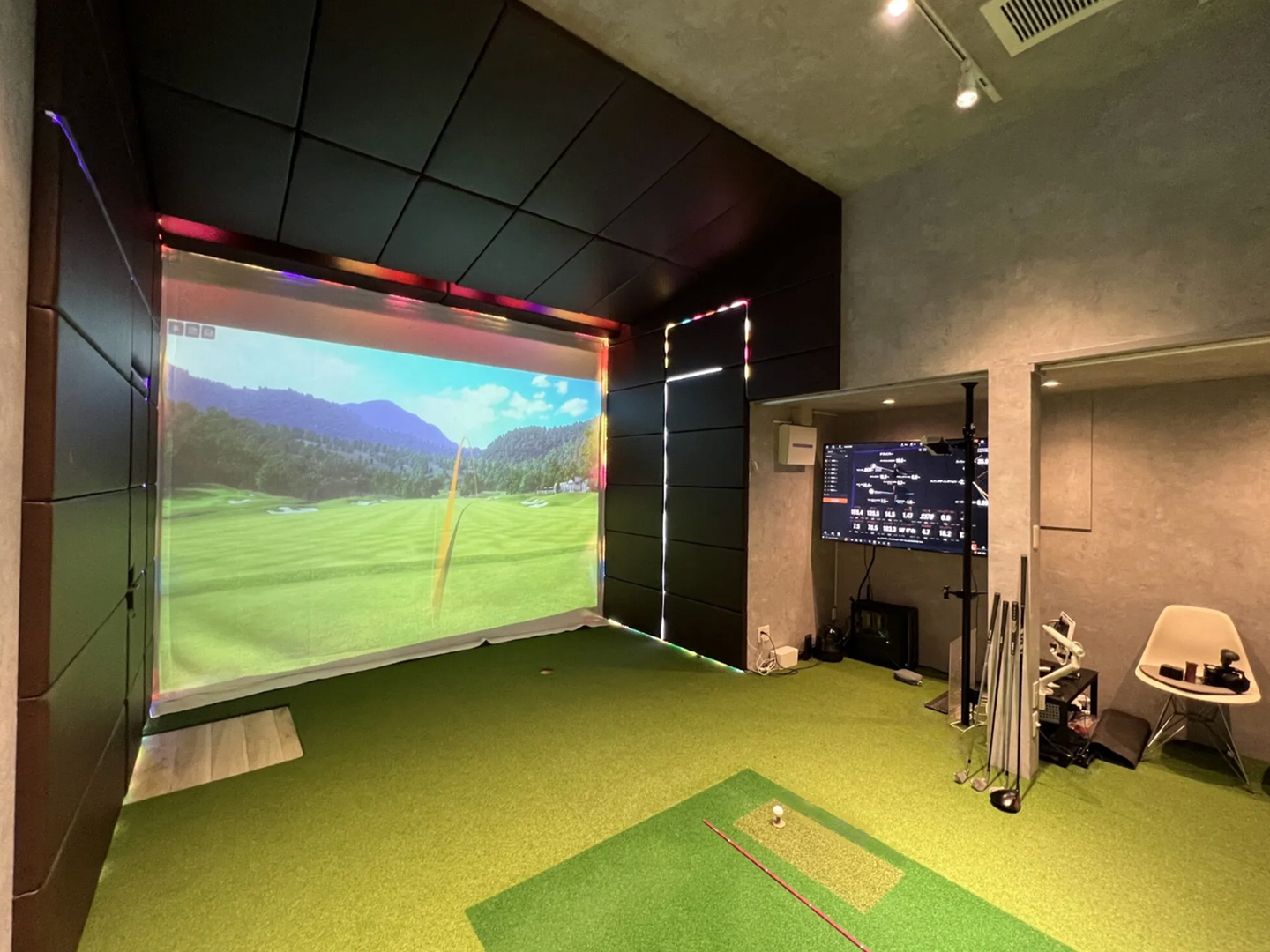 オフィス内に設置された室内ゴルフスタジオは弊社が運用しているゴルフYouTubeチャンネルや、インフルエンサーの撮影も行っております。