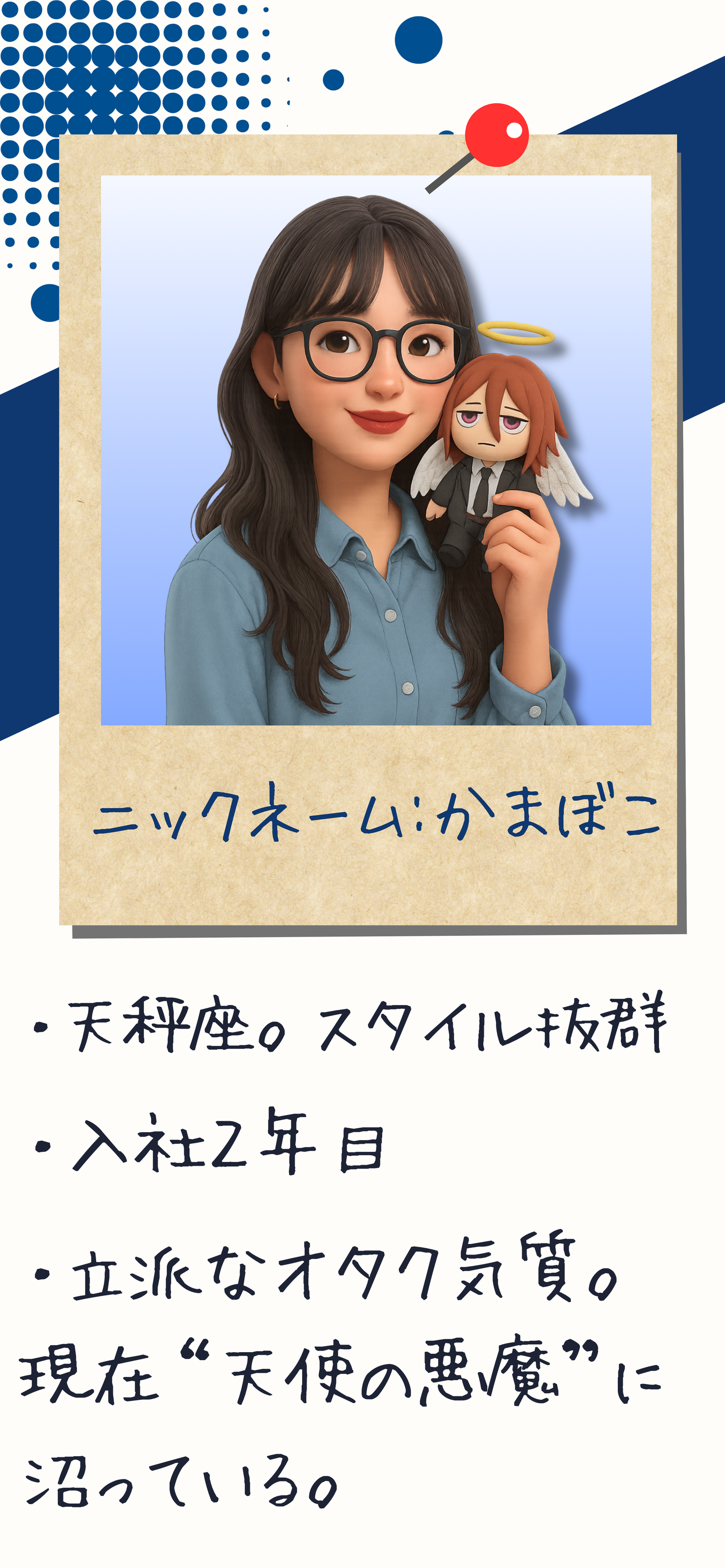 ちょっとシャイな彼女は、似顔絵&ニックネームでの登場です。