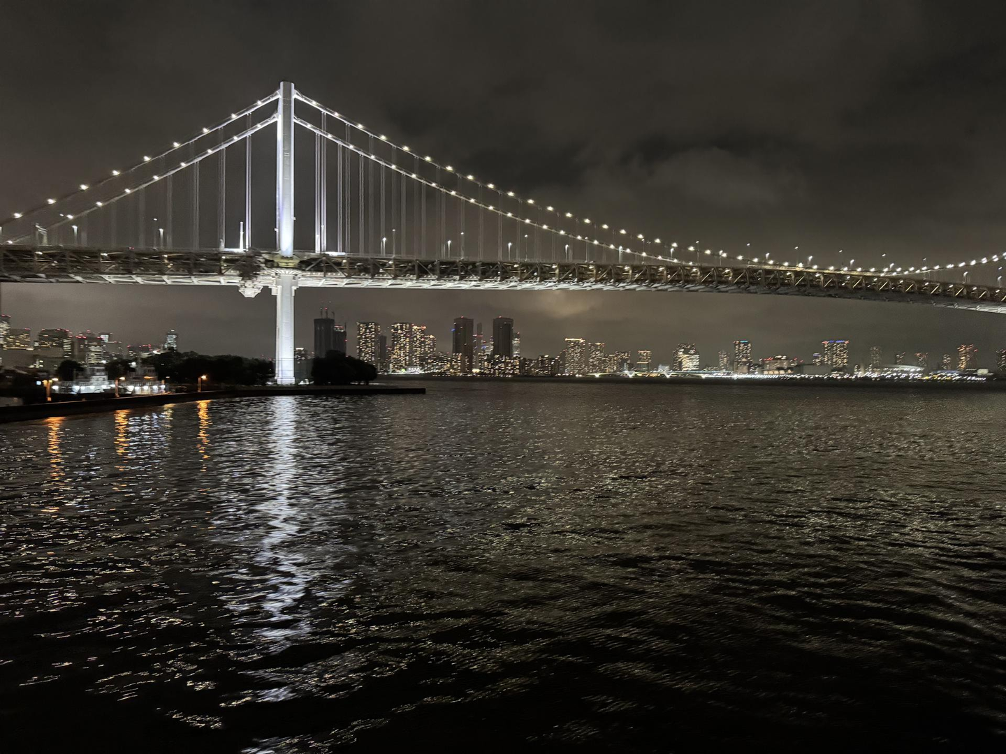 クルーザーの屋上デッキから眺めるレインボーブリッジ、立派でした・・・✨