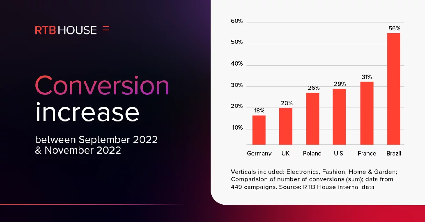 One overlooked aspect of retargeting is the ability to use timing to your advantage. This can be a particularly powerful tool for brands looking to take advantage of promo periods like Black Friday. During sales periods, shoppers are significantly more likely to make a purchase, with our Black Friday & Holiday Season Report showing that conversion rates significantly increase across a broad selection of markets during the holiday sales season.