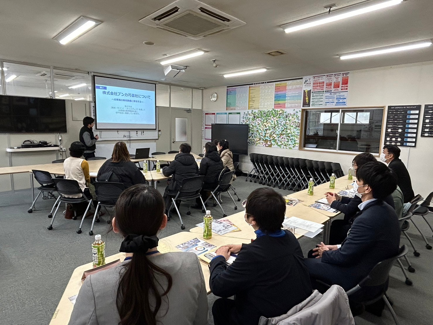 鹿児島市、ハローワークの職員の方々も含め、総勢11名に来社していただき、弊社の事業内容の説明や工場見学、弊社の女性従業員との意見交換をさせていただきました。