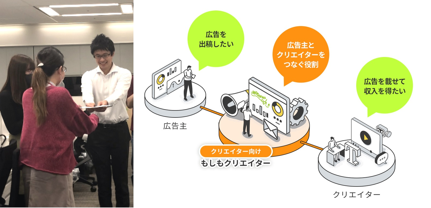 最近では、社員の発案により「もしもクリエイター」というサービスをリリースしました。これは、YoutubeやInstagram等で発信をする方が企業のPR案件を獲得できるプラットフォームです。フォロワーが少ない方でも広告収益を得られるように多くのPR案件を用意しています。