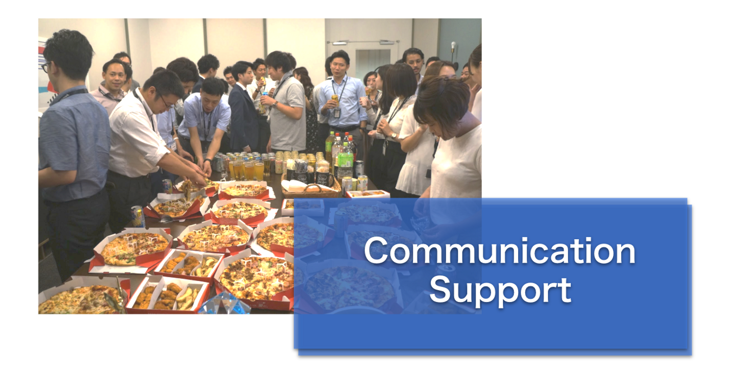 全メンバーが参加できる全社懇親会を毎月開催しています。雇用形態を問わず、既存社員同士の交流や、新入社員による自己紹介が行われ、異なる部署間のコミュニケーションの場にもなっています。事業の進捗、Topicsの紹介、今後の計画、MVPの表彰など共有をします。現在、会社の雰囲気を体感していただける機会として選考中の候補者の方や内定者の方、応募を検討されている方にも解放し、参加ができるようにしました。 - 全社会