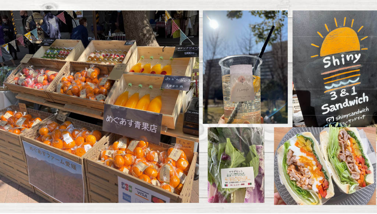 めぐあす青果店として、旬の柑橘類せとか、甘平(かんぺい)、ポンカン、不知火(しらぬい)の他ジュース類も販売しました。