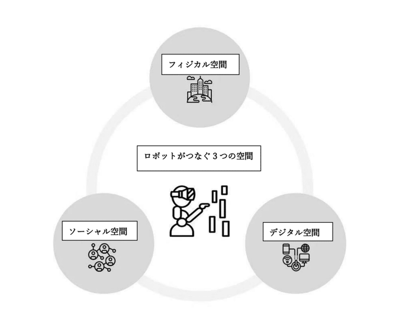 図2 サービスロボットは3種類の空間をつなぎ、総合的なデジタルトランスフォーメーションと都市の高度化を促進する