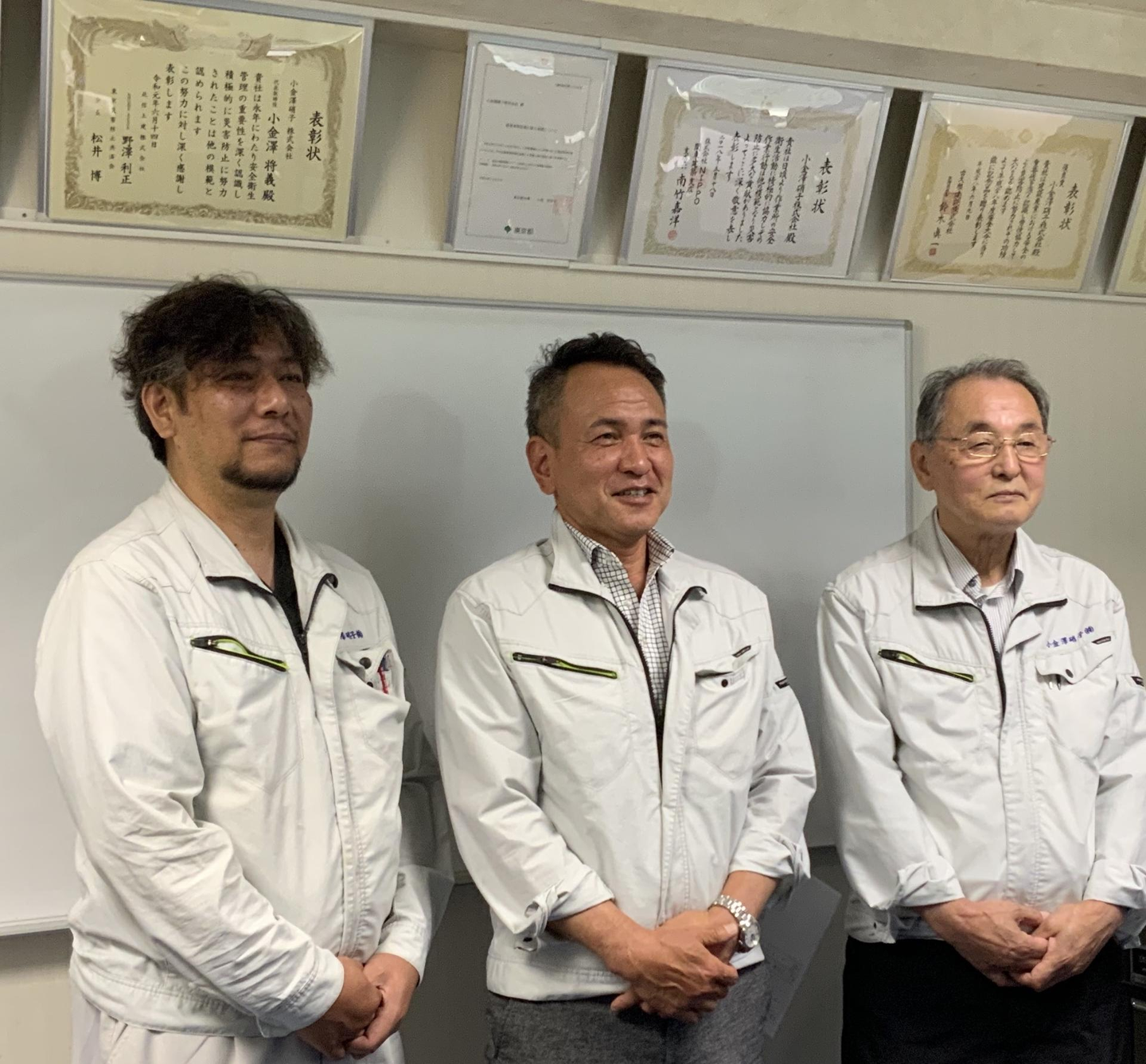 ▲左から南島さん、小金澤社長、益雄さん。少しずつ笑顔が見えてくる
