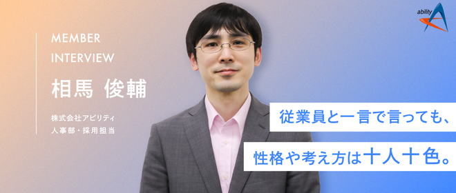商社での営業職を経て、2014年にアビリティへ転職。現在は人事業務(採用、教育、制度運用など)を中心に総務や営業の一部業務にも携わっています。