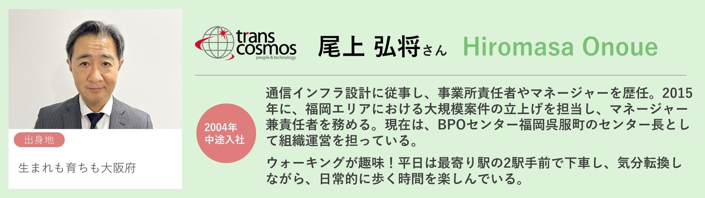 メンバー全員のことを想いながら、イベント運営を見守っておられるのですね。メンバーを最優先に考える熱い想いが強く伝わってきました!尾上さん自身も、トランスコスモスに入社後、多様な業務経験やキャリアを重ねてこられたことと思います。そんな尾上さんから、最後に、就活中の方や転職を検討されている方に一言お願いいたします!