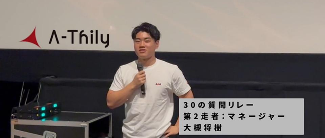 第一走者はエースリー役員 山尾恭平学生時代、野球やお笑いなど数々の挑戦を経験。その中で芽生えたのは、「仕事で自分の価値を証明したい」という覚悟でした。エースリーとの出会いをきっかけに、圧倒的な行動量と成果で信頼を積み重ね、現在は会社の中核を担うポジションへ。戦略設計や組織づくりを通じて、全員が結果を出せるチームをつくることに本気で向き合っています。今回はそんなエースリーのNo.2、山尾さんの素顔を、30の質問を通して深掘りしていきます!01〜10|あなた自身について 1. あなたを一言で表すとしたら?愛 2. 周りからよく褒められるあなたの強みは?1ゆったら100理解する 3. 逆に、直...