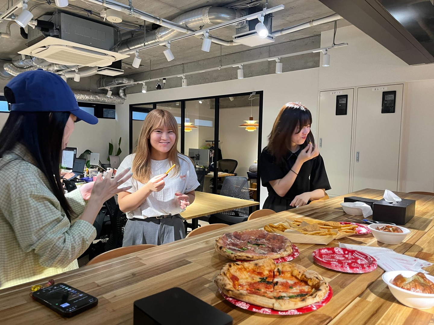 この日のフードは、オフィス近くの人気ピザ屋さんの本格ピザ。