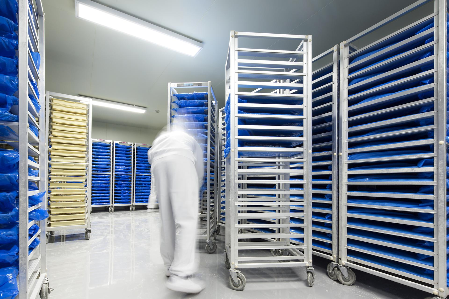 パンの味が落ちる2大要因は「水分の蒸発」と「デンプンの劣化」です。この2大要因を防いでいる手法が冷凍!元々冷凍食品を作りたかったわけではなく、美味しいパンを届けるための手段として’冷凍‘という手法を採用しています。焼きたての最高の状態を-45℃の急速冷凍庫で一気に凍らせて、鮮度を閉じ込めており、急速冷凍することで、あの焼きたて直後の薄いパリッとしたクラスト(表皮)とみずみずしく、もっちりとしたクラム(中身)の食感がそのままの状態でキープされます。
