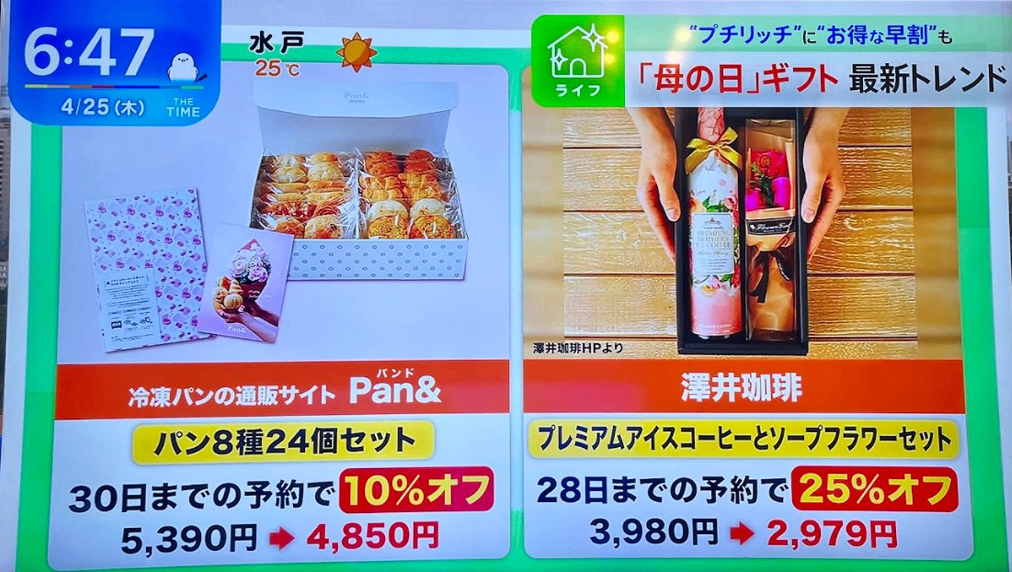 母の日ギフトの早割お得商品の一つとして紹介いただきました。