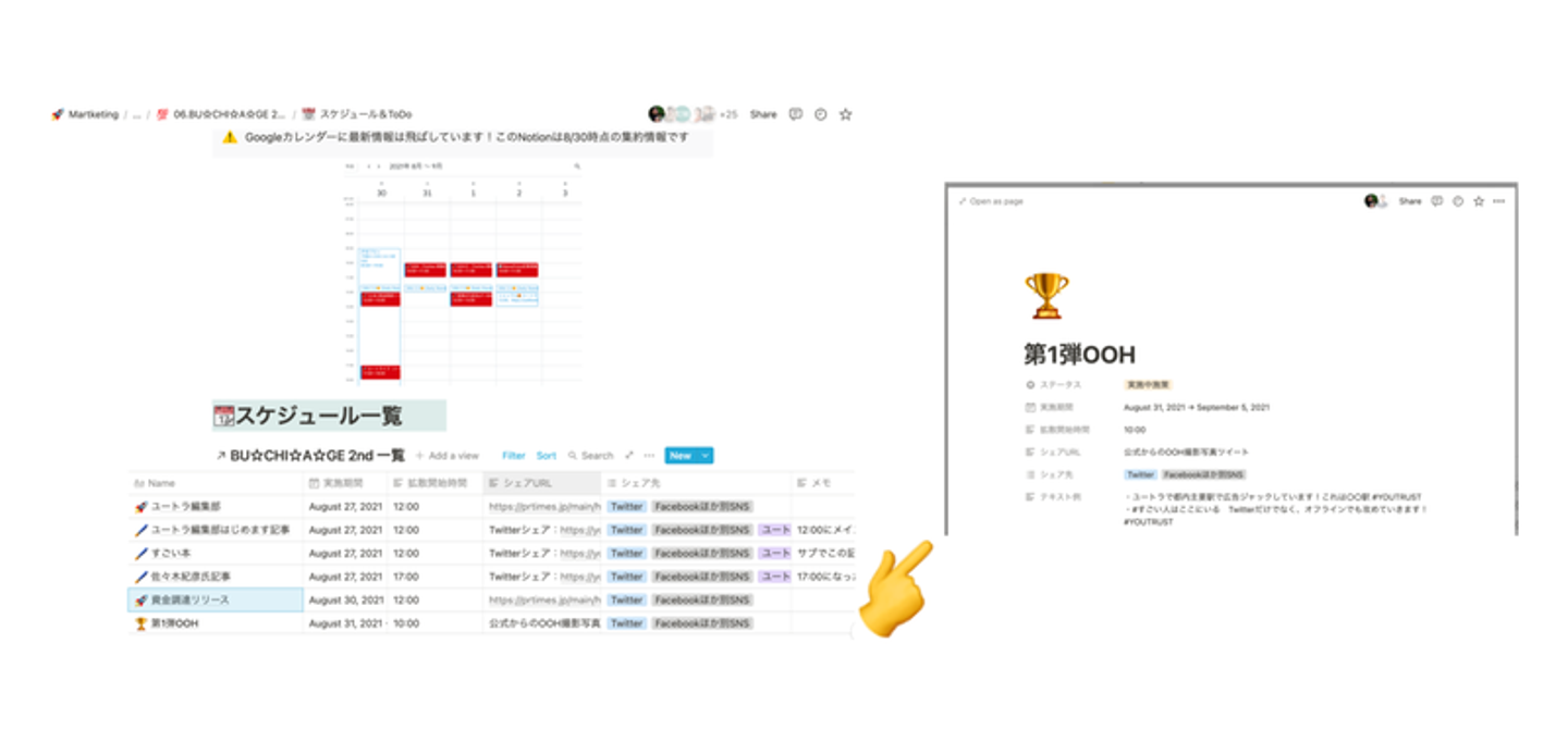 ▲Notionに熱源アイテムを一元集約・Googleカレンダーにも連携