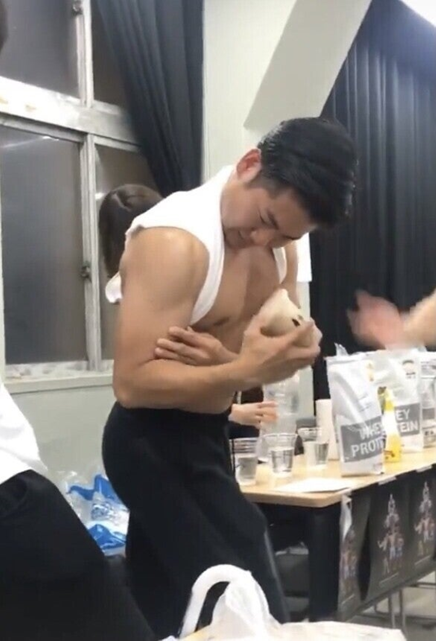 ▲学祭で出店したマッチョカフェで必死にプロテインをシェイクする渡邊