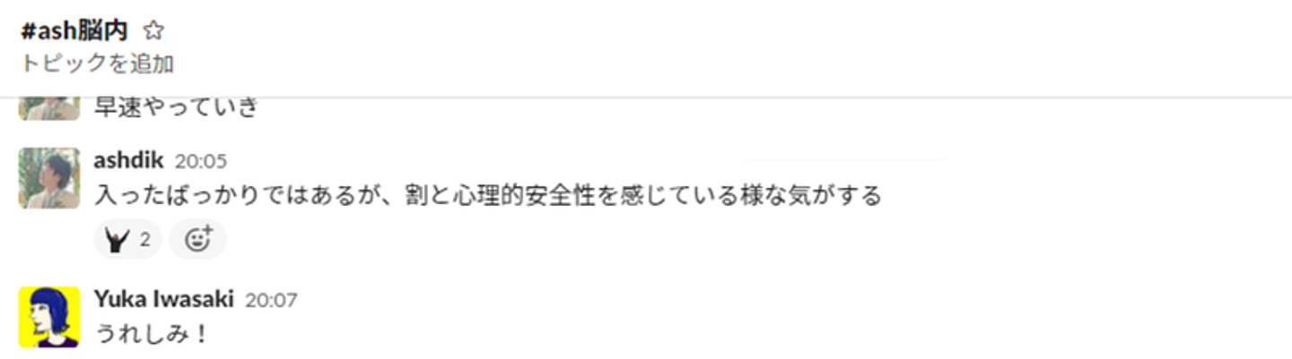 また、入社して間もないころから自己開示ができる空気感にも惹かれていました。YOUTRUST内では全員作成必須になっている「#脳内」というslackの個人チャンネルで自分が思うことを呟けば、岩崎や山田など創業メンバーともまるで同僚のようにコミュニケーションが取れます。そういう環境は凄くいいなと今でも思っています。