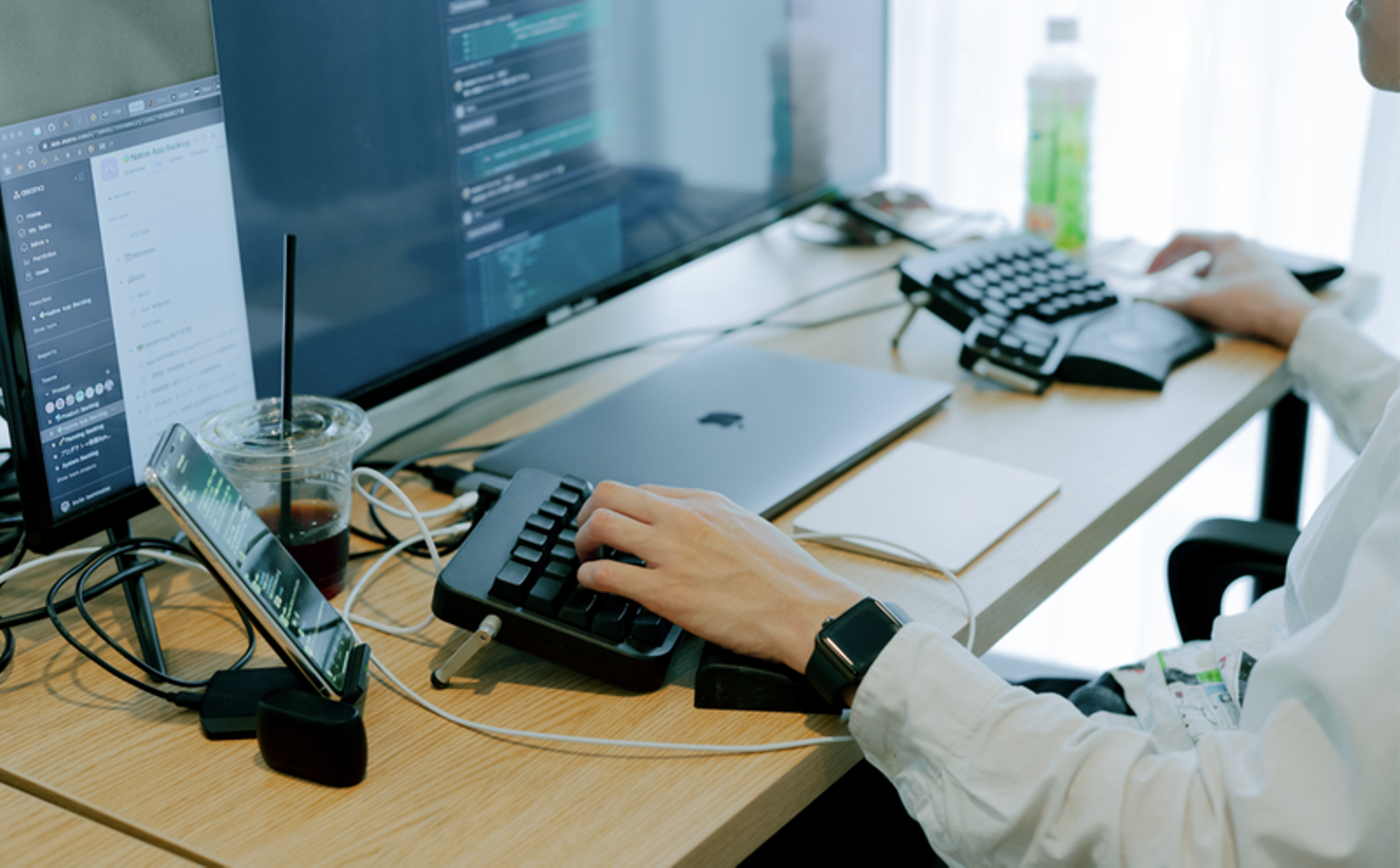 内定を貰ってからは内定者アルバイトとして働き始めました。実際にエンジニアとして働き始めてからは大きなギャップはなかったですが、学生時代に触っていた言語とは全く違う言語で開発を進めることに戸惑いを感じた場面もありました。例えるなら、洋食店で修行してたけど急に和食を作れと言われるような感じ(笑)。ベースの部分で通ずる部分はあったものの、言語に関してはほとんど初心者の状態で働き始めました。独学で勉強をしながら実践をし、経験を積んでいきました。