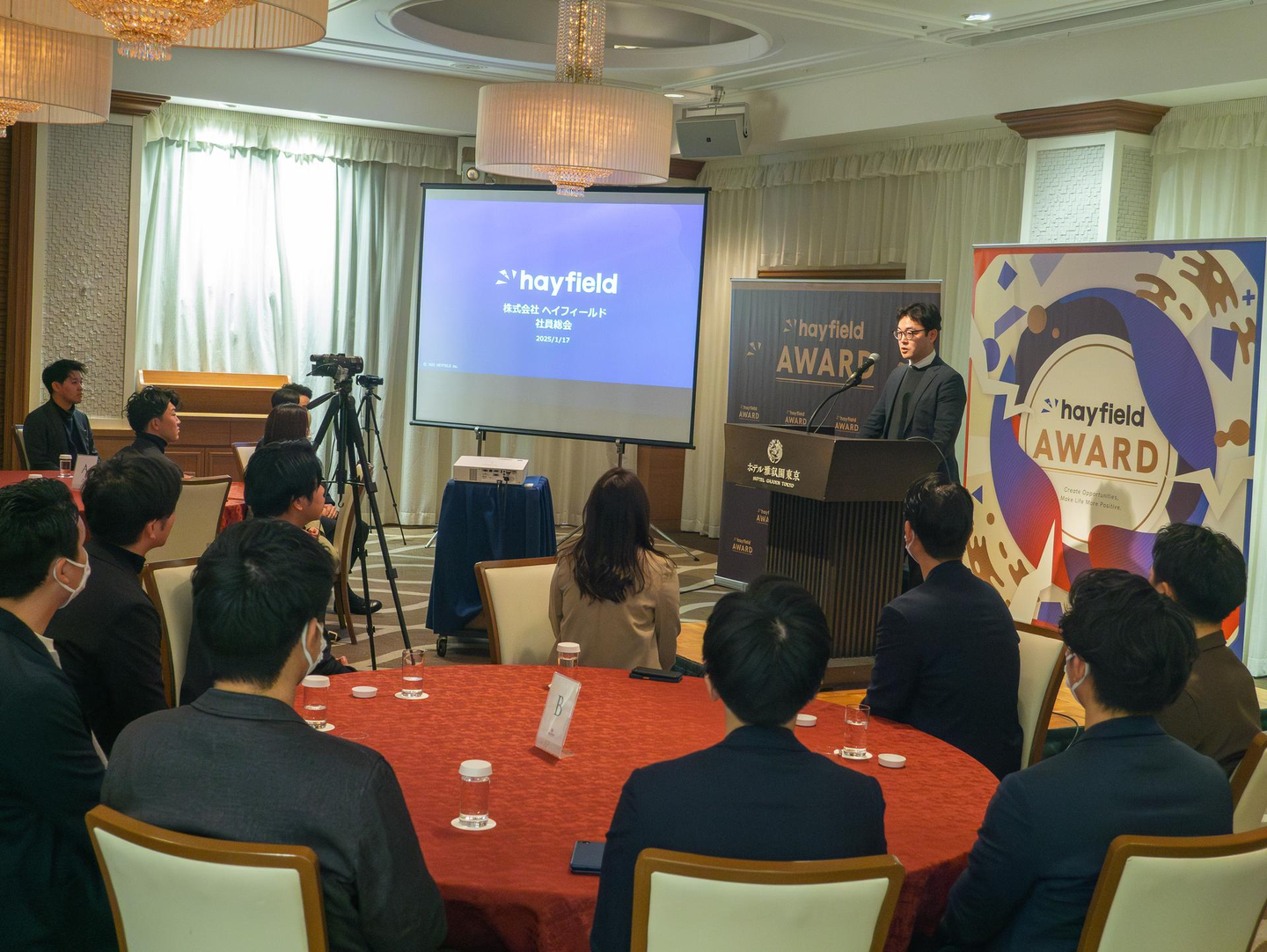 今回の【ヘイフィールドAward 2025】では、会社の成長とともに社員総会も進化し、新たな表彰やサプライズ企画を通じて、ヘイフィールドの文化を改めて実感できる時間となりました。受賞者の皆さん、本当におめでとうございます!また、受賞に至らなかった方々の努力や挑戦も、会社の成長に欠かせない大切なものです。次回の総会では、さらに多くの活躍が生まれることを期待しています。