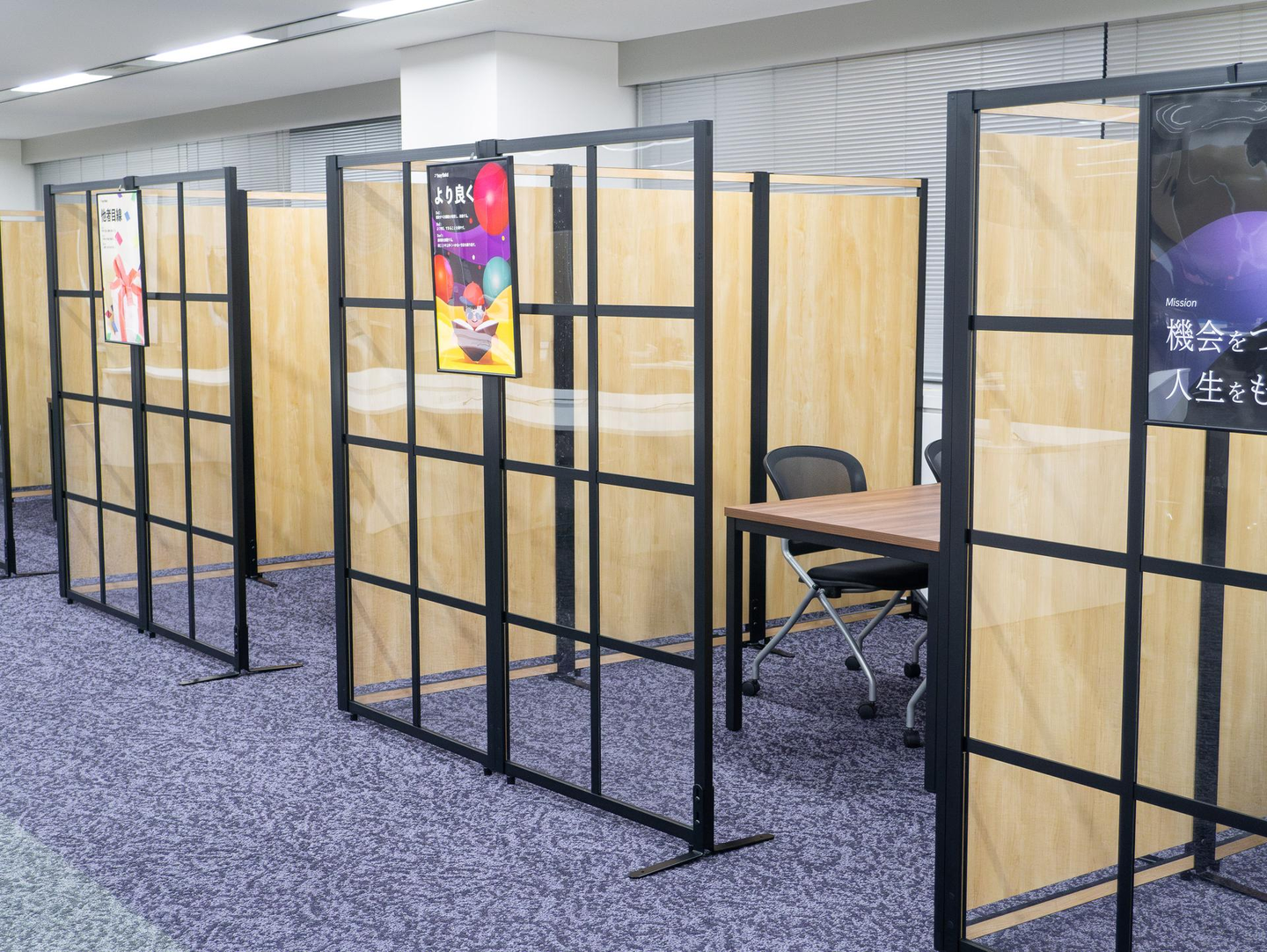 求職者様との面談を行う際、こんな面談用ブースを使うこともできるようになりました。