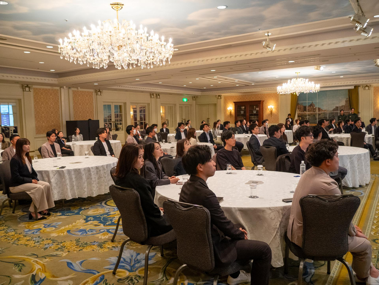 今回の会場は、オフィス移転後初めてとなる「ウェステンホテル東京」。開放的で洗練された空間に、社員たちも期待に胸を膨らませている様子でした。