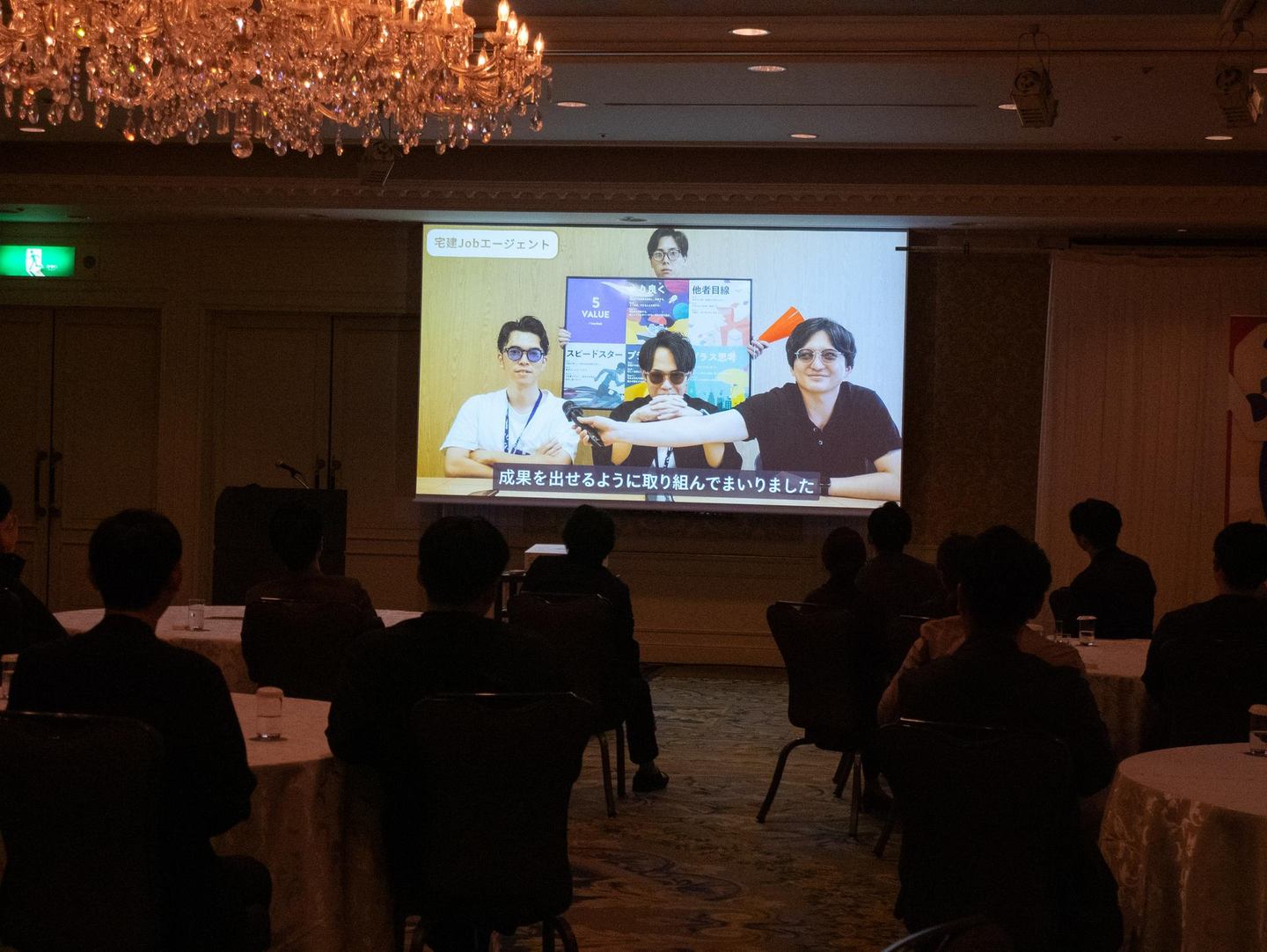 表彰式はオープニングムービーでスタート!社員にも撮影に協力してもらい、笑いありのオープニングで大盛り上がりの開幕となりました。