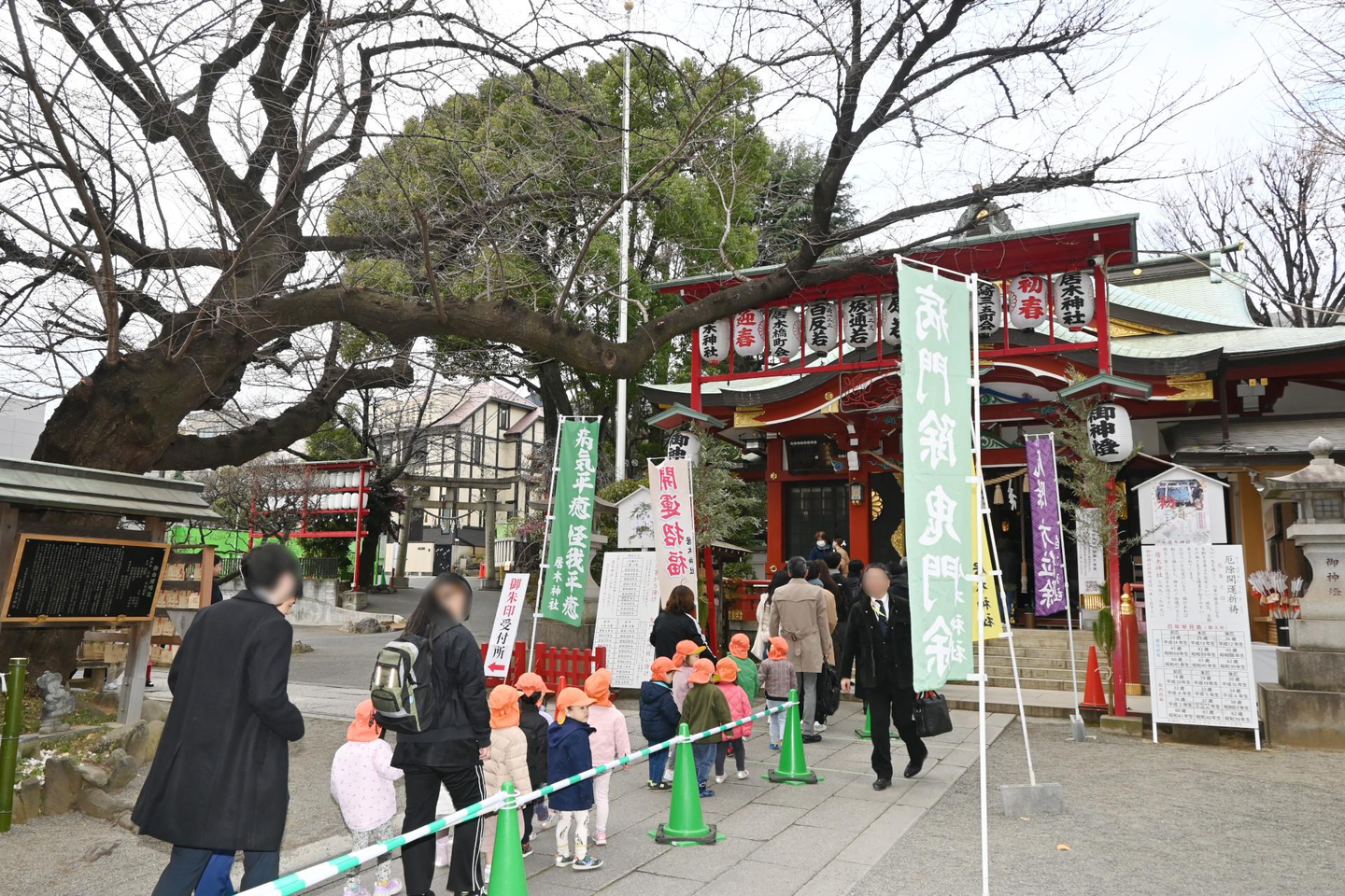 居木神社はスーツ姿のビジネスマンで賑わっており、近所の子ども達も参拝に訪れていました。