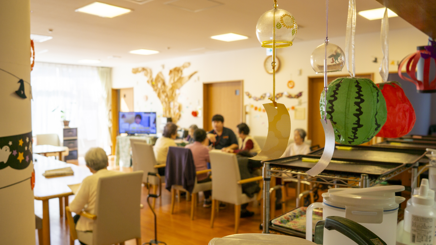 グループホームは認知症の症状をもつ高齢者の方が、住み慣れた地域で生活を送りながら、認知症の進行緩和と自立支援を目指す介護施設です。最大9名という少人数のユニットで365日を過ごされる入居者さんの生活を職員がサポートしていきます。一方、小規模多機能型居宅介護は高齢者の方が住み慣れた地域で生活を続けられることを目的とした介護施設。最大29名が定員で、施設への通い、短期間の宿泊、自宅への訪問の3つの介護サービスを提供しています。実は私、この小さな介護のあり方を、ものすごく気に入っています。介護って人ひとりの人生に寄り添うお仕事じゃないですか。だから広く浅くの関係性のなかで介護をするよりも、たとえ狭くても深く関係性を育んで介護をした方が絶対に良いと思うのです。実際、得られる達成感もひとしおで、日々やりがいを感じています。