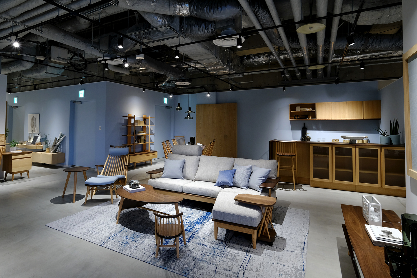 『KASHIWA YOKOHAMA』は、柏木工が新たに立ち上げた B to C 事業をおこなう店舗です。ショールームでは同社のデザイン家具「KASHIWA」ブランドの受注販売だけでなく、建具や部屋を彩る小物類などを用いた空間デザインサポートからアフターサービスまでを一貫して行うのが特徴となっています。