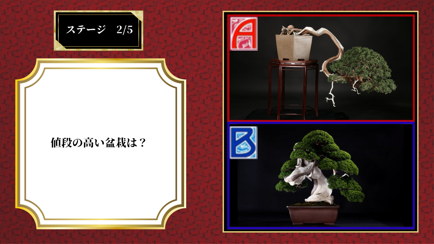 「片方は盆栽作家の小林國雄さんの作品で、彼が41歳の時に内閣総理大臣賞を受賞したものです。一方、もう一方はオンラインショップ『羽生 雨竹亭』で購入できる20万円の盆栽です。」