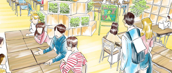 東京と大阪で年間7万人以上の学生が訪れる、「学生限定無料フリースペース-kenjaya-」を2013年7月より運営しています。「頑張っている学生を応援したい!」という想いから始めたフリースペースを運営しているのは地元の大学生や高校生です。利用者と同じ目線に立つ学生が空間設計をすることで、「賢者屋」という空間へのファンを増やしていくことに注力しています。その甲斐あって、口コミなどの情報発信のみで昨今は7万人もの学生が訪れるようになりました。