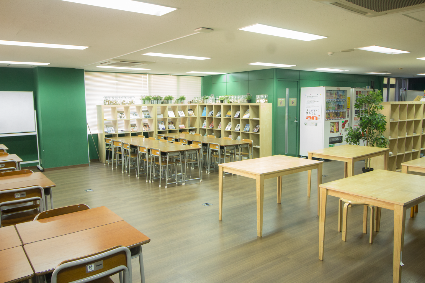 賢者屋へ入ってみると、どこか懐かしい気持ちになるはずです。黒板色の壁、一度は使ったことのある懐かしい机と椅子など・・・・利用者の皆様が周りの目を気にせず、気を張らない居心地の良い空間にしていくためにも、学生限定のスペースにしています。