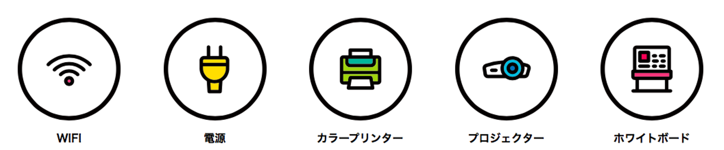 Wi-Fi、電源(コンセント)、ホワイトボード、プロジェクター、スクリーンなども完備しています!
