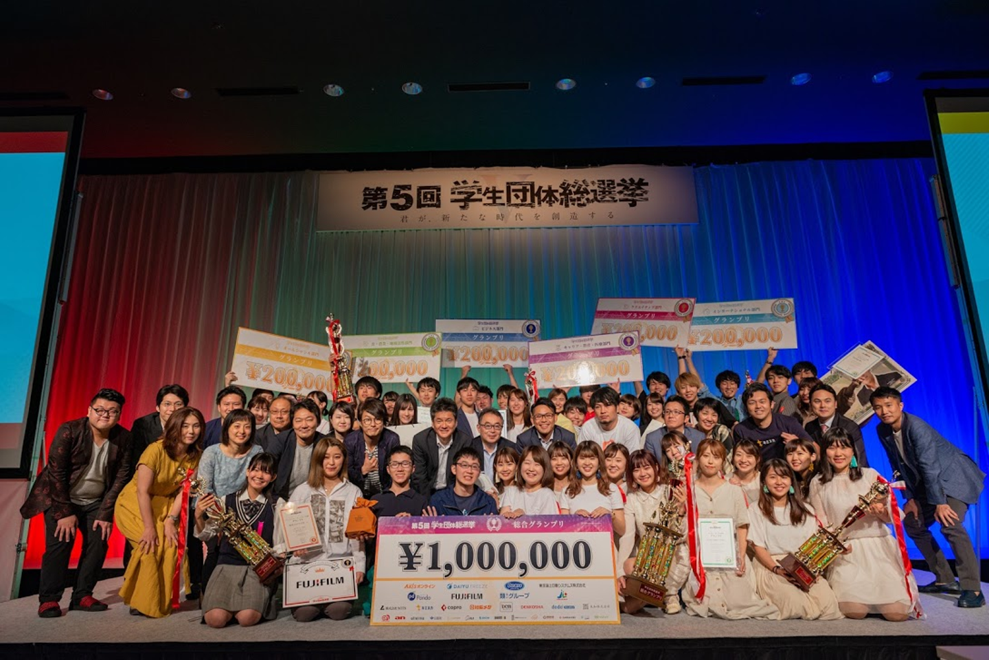 全国各地で意欲的に活動する、学生団体・サークル・部活動を表彰するコンテストです。全国から約1,000団体がエントリーし、全8部門に分かれ部門毎に表彰を行い部門グランプリから総合グランプリを決定し、総合グランプリには賞金100万円が贈呈されます。また、部門グランプリ・準グランプリに輝いた学生団体にも協賛金を贈呈します。コンテスト終了後は参加学生と協賛企業様を交えた交流会も開催します。選考を勝ち抜いた団体には、サポート企業からの支援金や、その他様々なサポートが与えられます。