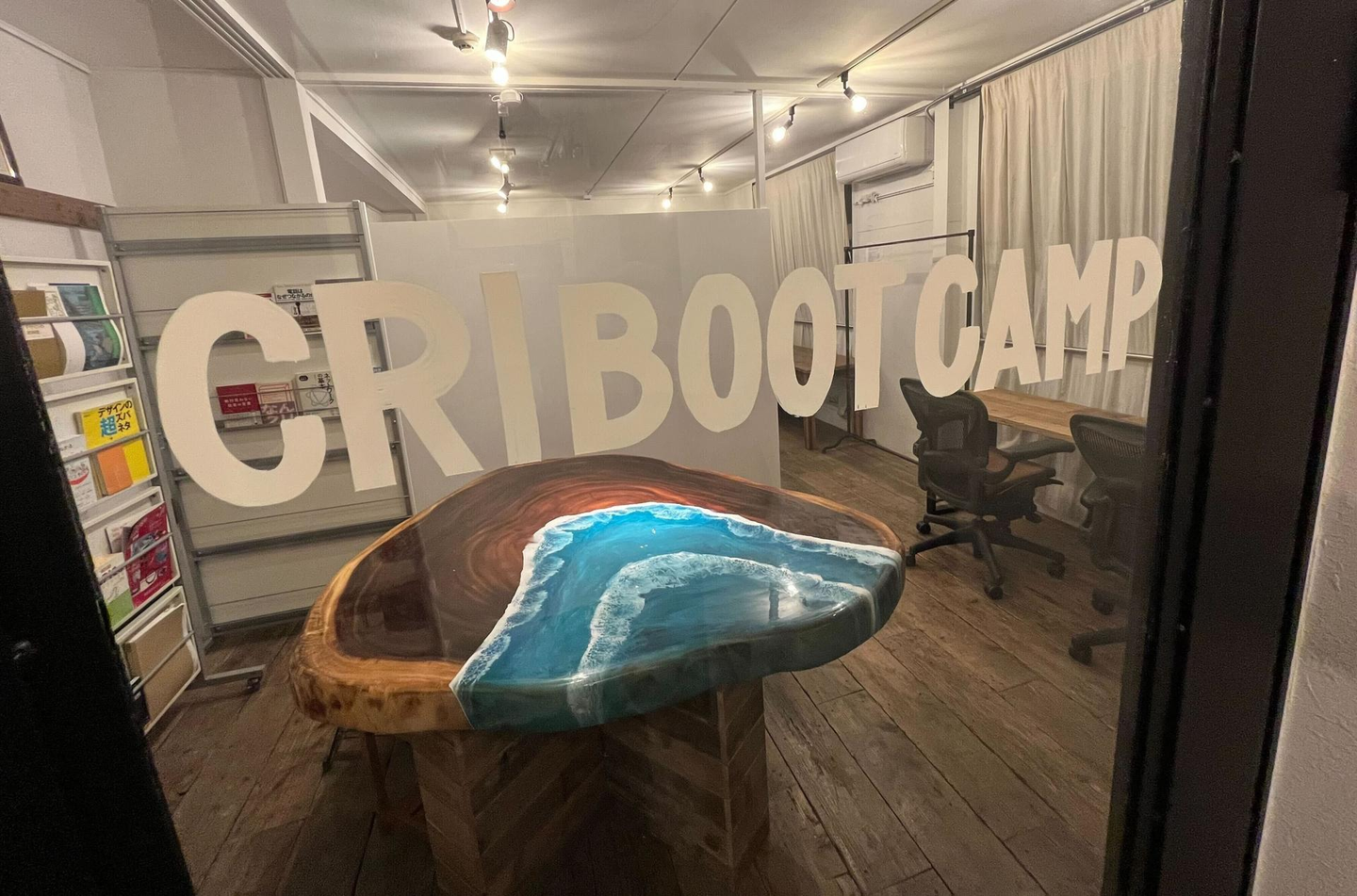 扉に「CRI BOOT CAMP」と書かれている部屋が見えます。