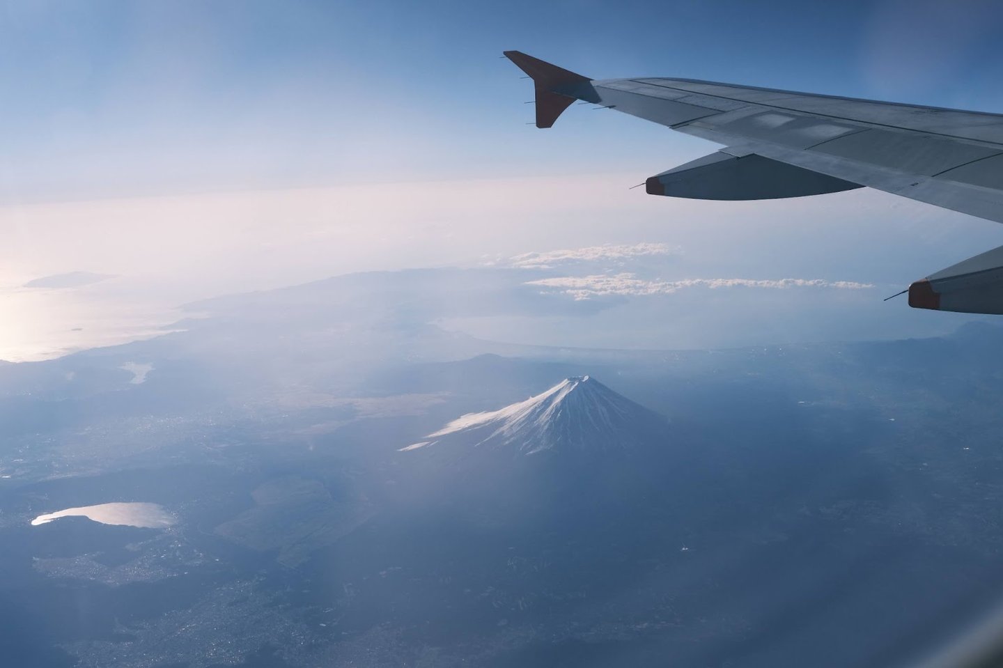 こちらは行きの飛行機で撮影した富士山の写真です!運よく見ることができ、思わず何枚も撮影してしまいました...。