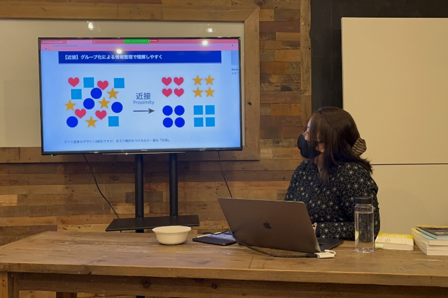 デザイナー以外の職種にも役立てられるような、デザインの原則やちょっとしたコツを、経験談を交えて簡単に分かりやすく説明いただきました。資料作成や様々な業務にも活かせるような内容でした。