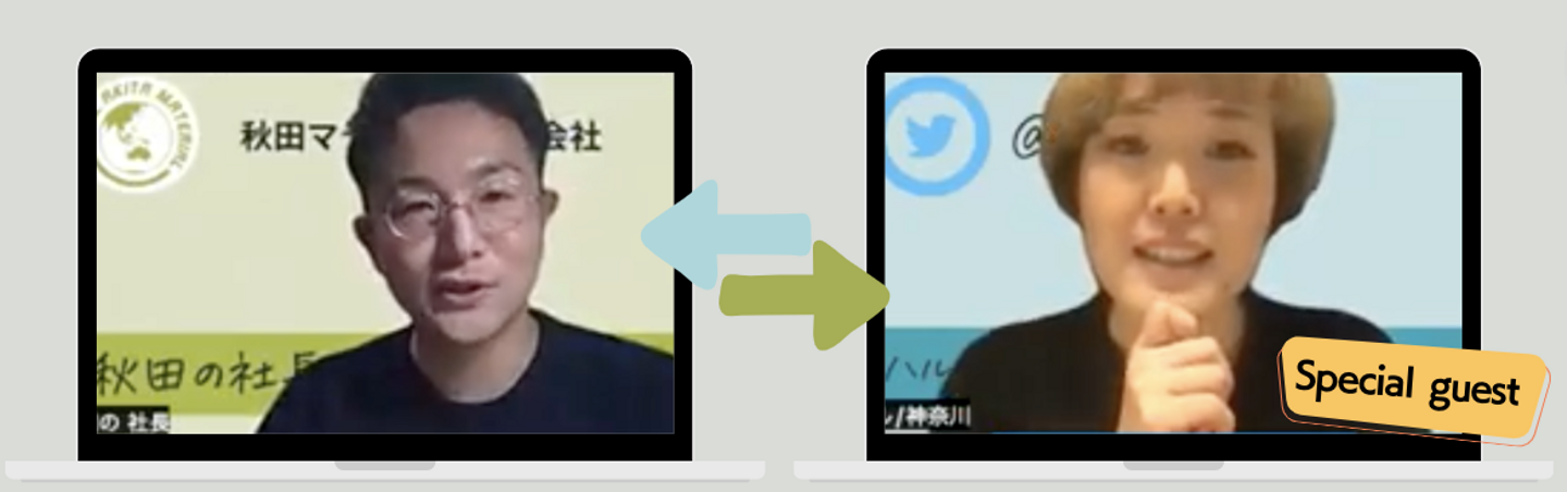 この企画は秋田マテリアルの代表取締役である佐藤佑介(以下、佑介さん)が、ゲストを招いてトークテーマに沿って対談します。佑介さんが気になることや、参加した視聴者さんから、ゲストに質問していき新たな価値観を開拓していこう!という企画です。ゲストに次のゲストを繋いでもらうリレー形式で、秋田に留まらず日本各地にいるゲストと対談する新鮮でわくわくする内容となっています!
