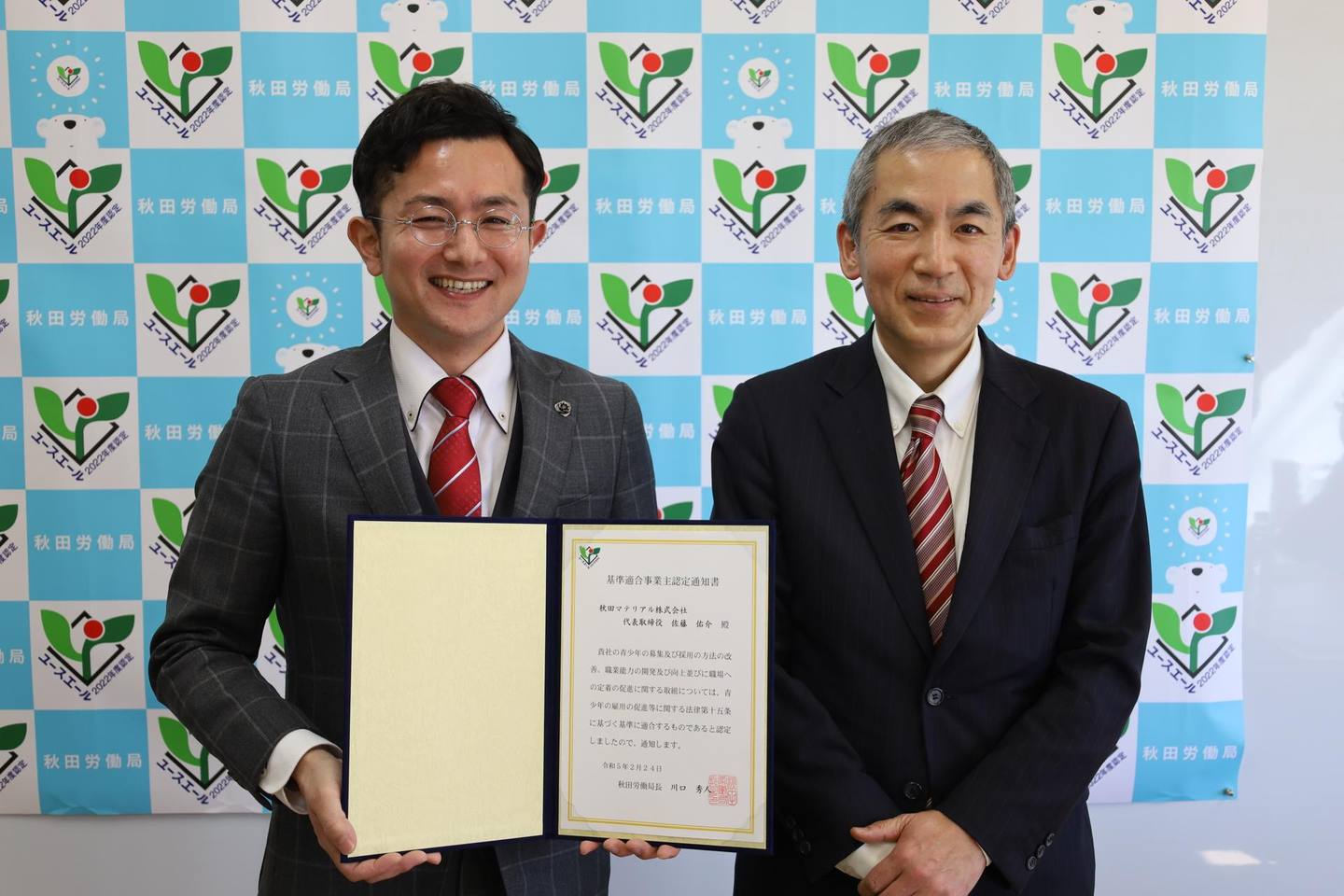 秋田マテリアルは、2022年度ユースエール認定を取得しました!!!
