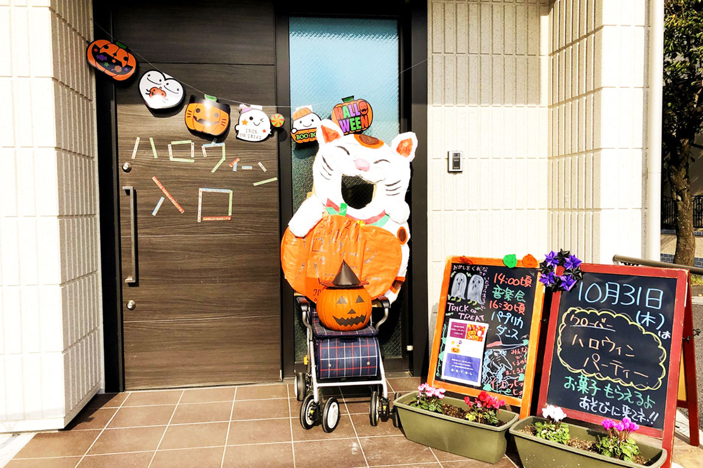 そこから、ハロウィンに地域の子どもたちや教会の聖歌隊の方を招待して、イベントを行うようになりました。子どもたちのために、少しずつゲストとお菓子や飾りの準備もして、当日になると子どもたちがトリック・オア・トリートしに来るんです。今ではその時期になると、地域のママや保育園、子供会などから、『今年もやりますか?』と問い合わせが入るようになりました。デイサービスとして認知されることによって、地域の子どもたちがいざという時に逃げ込める場所になったらいいなと思ってるんです。保護者もここがどういう場所か分かっていたら、安心して頼ることができますしね」