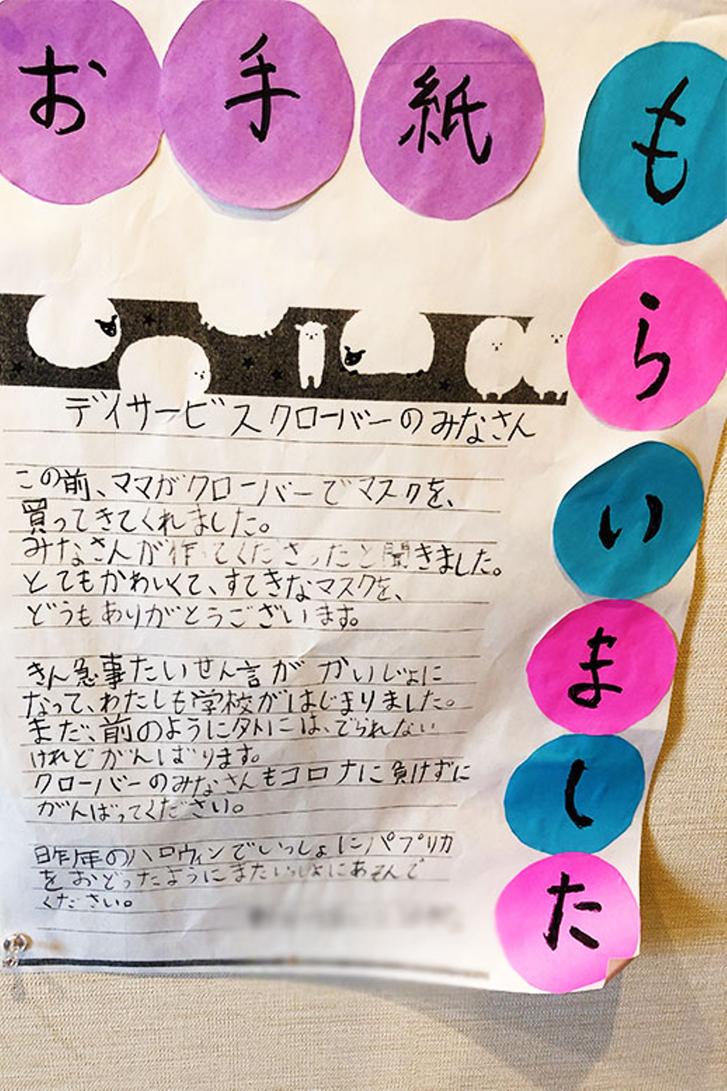他にも、この新型コロナウイルス流行をキッカケに、ゲストの手作りマスクの販売を始めた。すると、マスクを買ってくれた地域の子どもからお礼の手紙が届いたという。高齢者のゲストが地域から隔離されるのではなく、地域の中で「役割」を担っている。