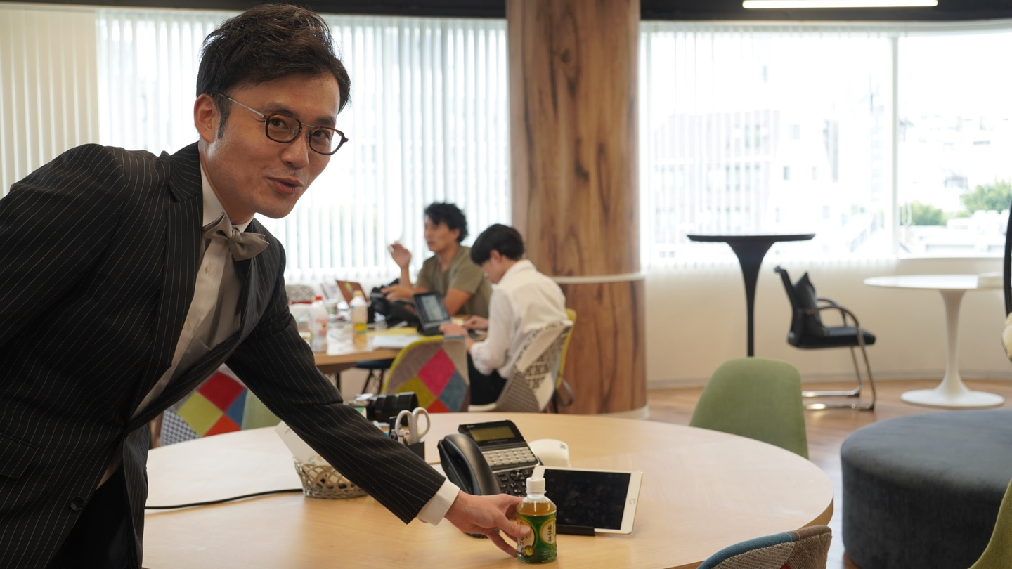 おお!ち、ちょうど喉渇いてました!あ、ありがとうございます!(っていつの間に、衣装チェンジ?!蝶ネクタイまでまでつけてるし…「スマート」の捉え方ちょっと個人差あるみたいだけど、これでも意識してるのかな(笑))