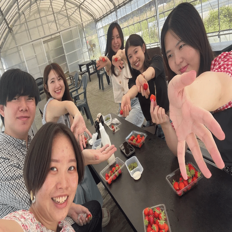 ちなみに私はいちご狩り&吹きガラスチームです!