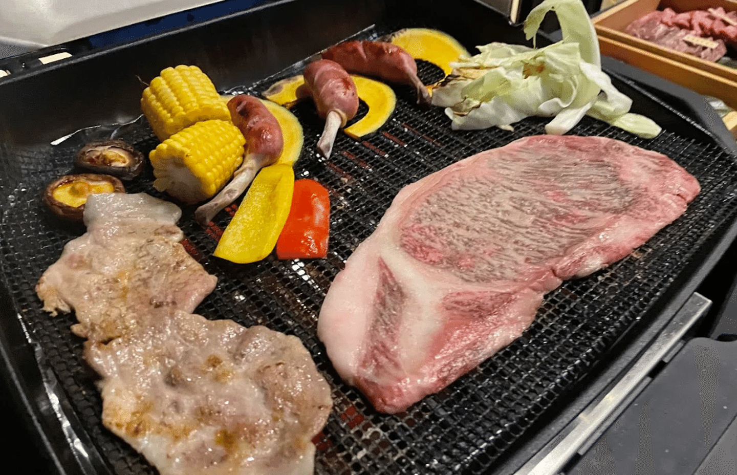 夕食はBBQとのことで、荷物を置いたらすぐお食事処へ。