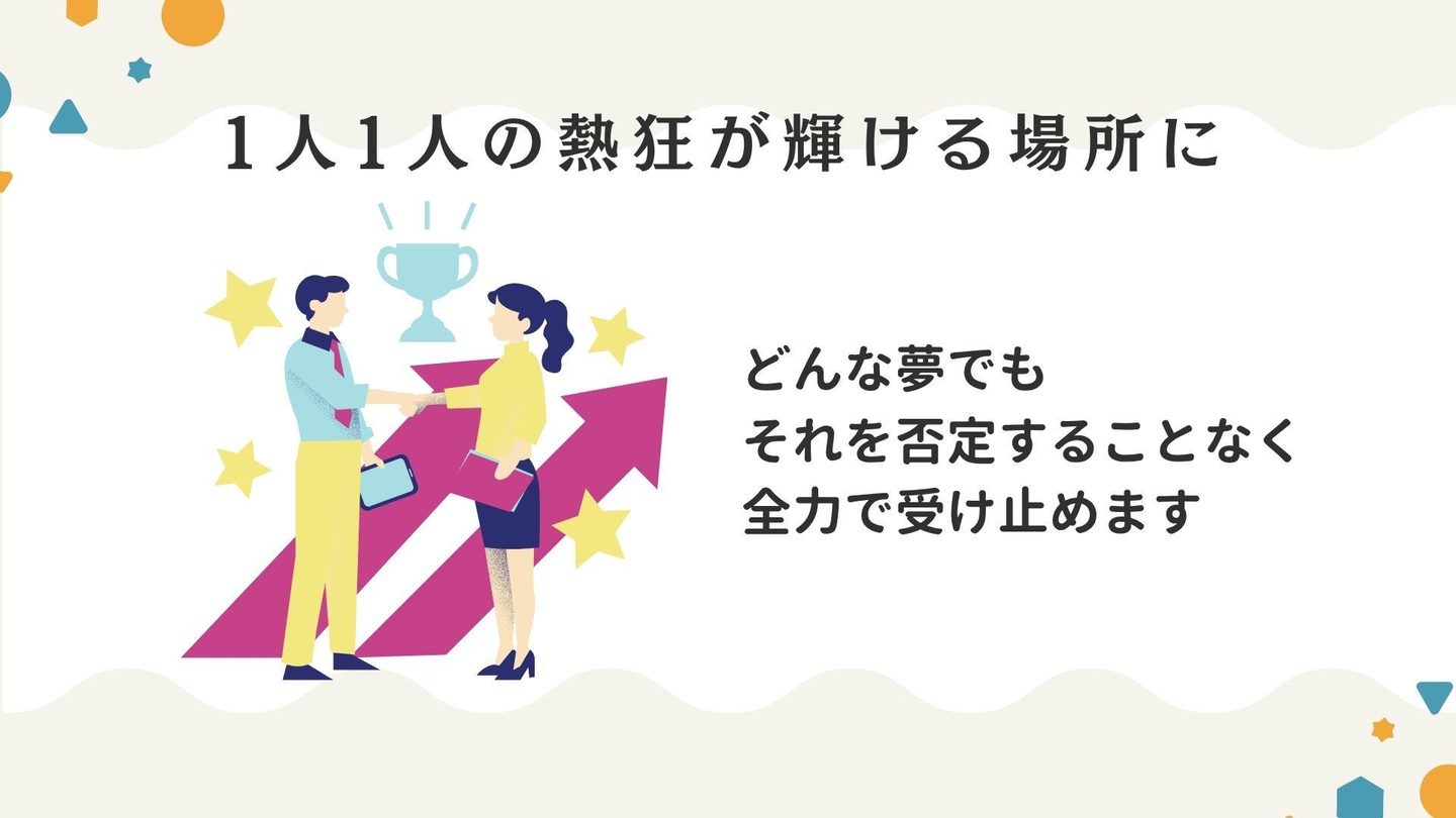 1. 理想を追う社員の熱狂に、弊社は応え続けます