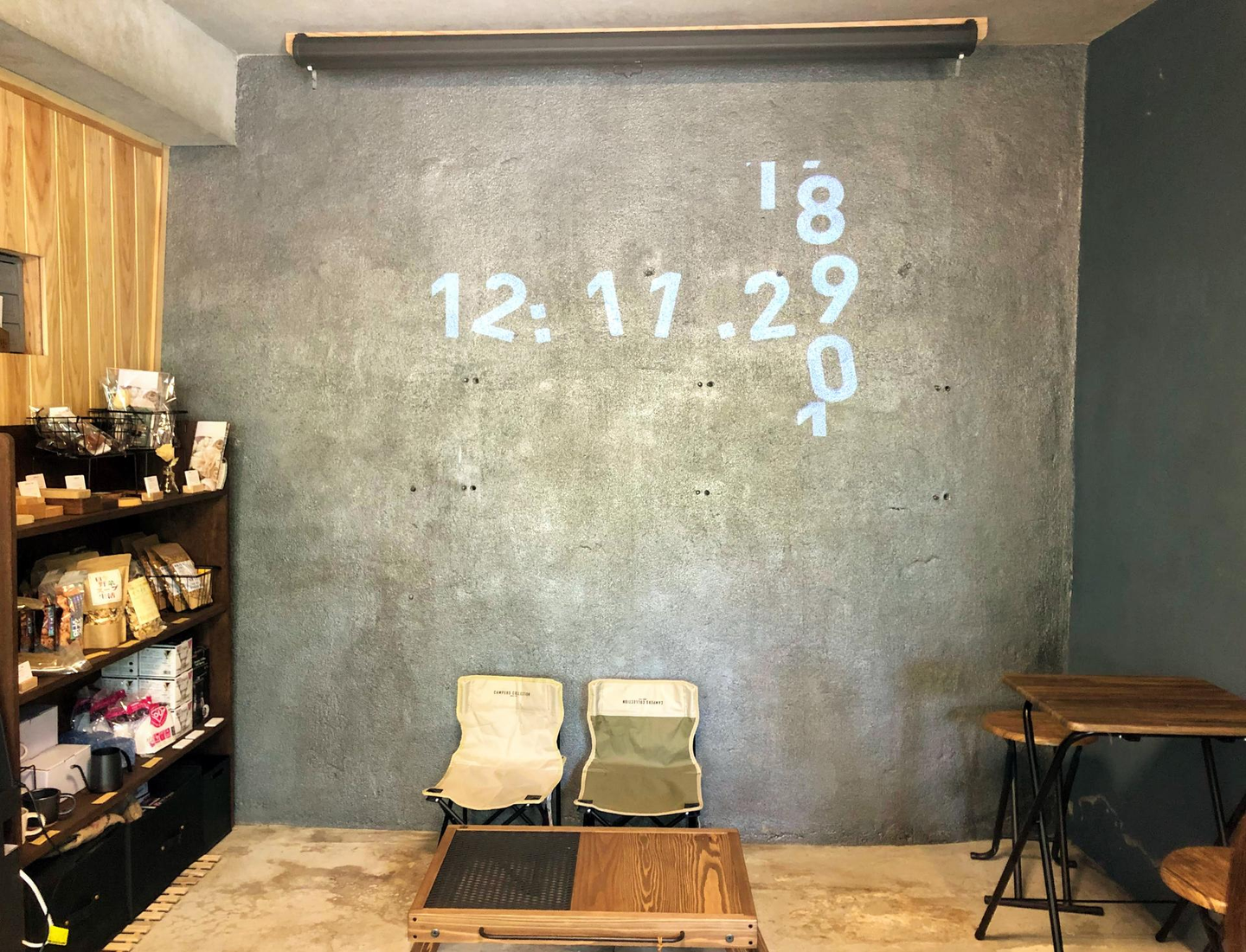 店内はとてもオシャレで、灰色の壁に時刻が刻まれていきます。木のテーブルには温もりがあり、とても落ち着く空間です。