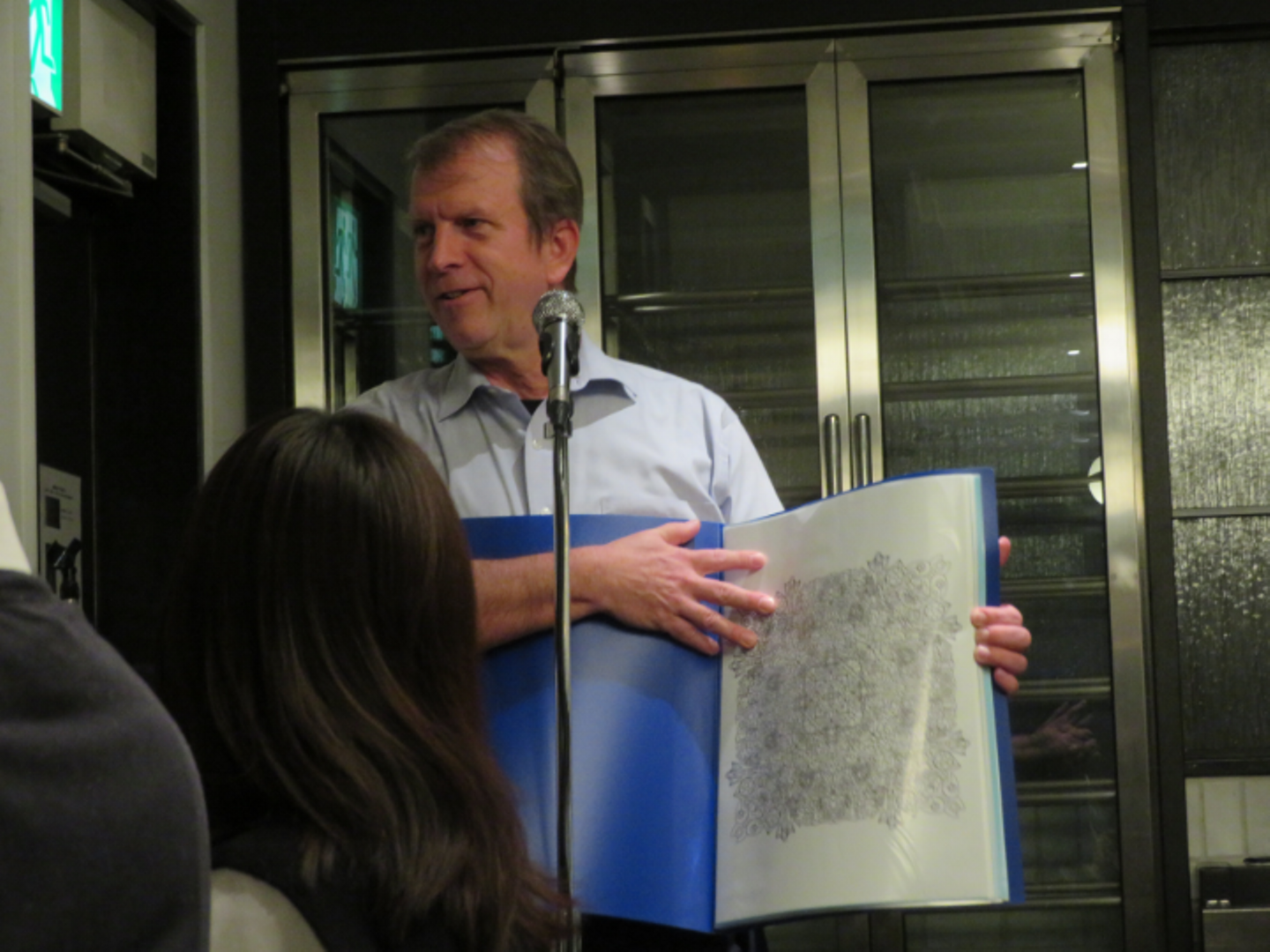 本社でも、各部門の代表者が今年一年がんばったこと、来年の抱負を公私にわたり話してくれました。なかには、絵が描くのが得意な社員が、自身の今年の作品を紹介してくれる場面もありました。