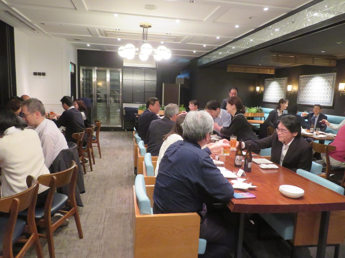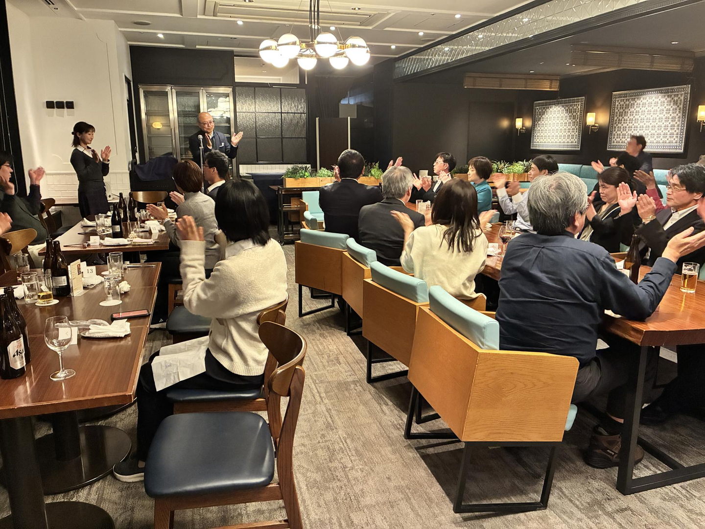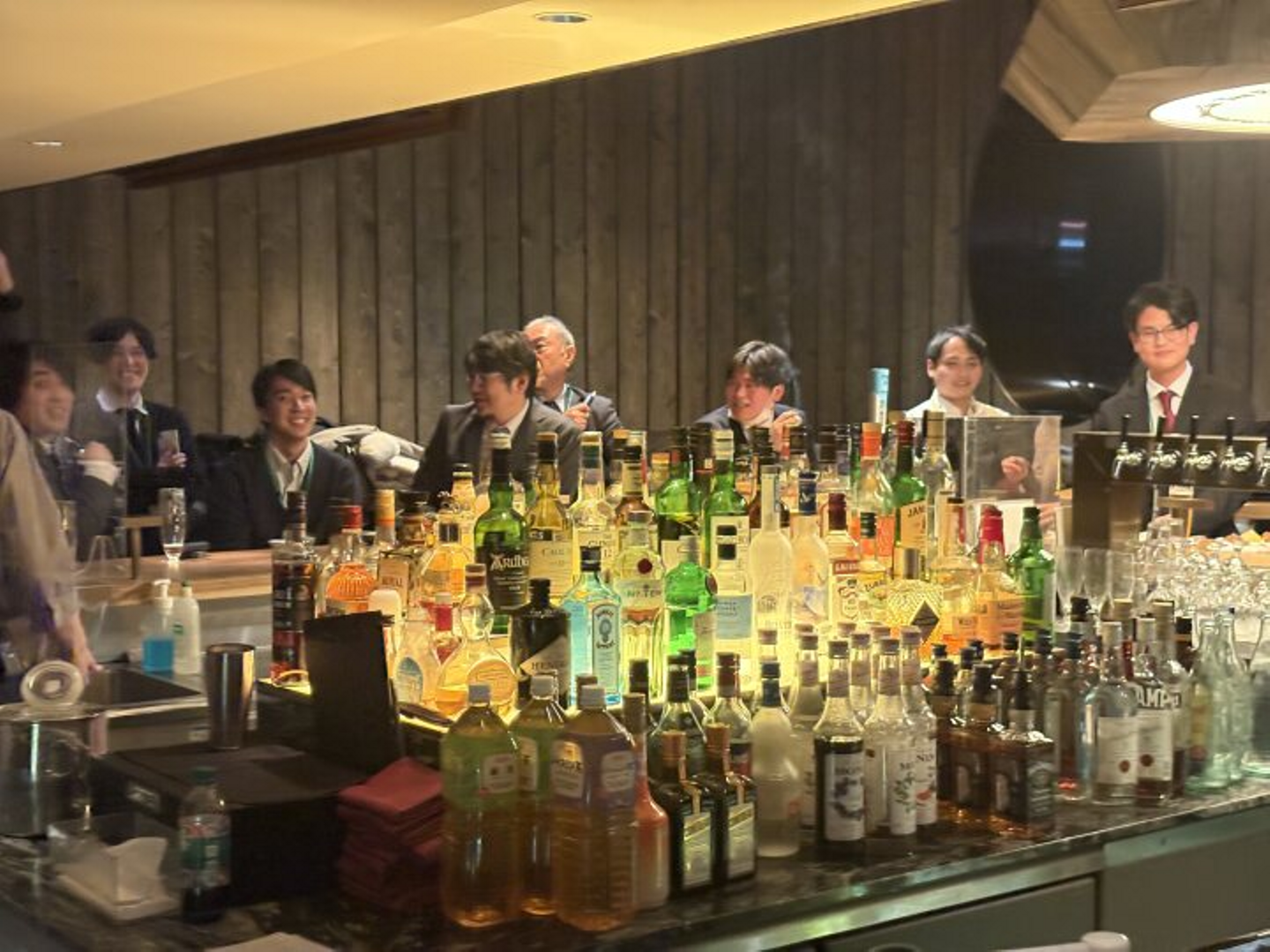 東京事業所では六本木のガストロパブを貸し切り、立食スタイルのパーティを楽しみました。テレワーク中心の働き方が続く中、58名が揃って顔を合わせる貴重な機会となりました。